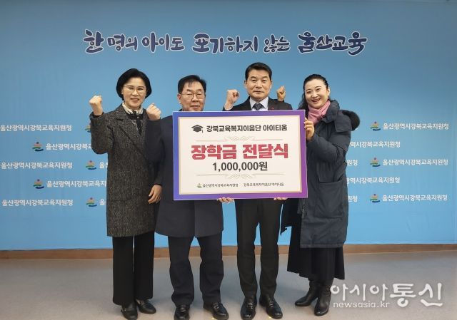[아시아통신] 울산 강북교육지원청은 19일 교육장실에서 교육복지이음단 동아리 ‘아이티움’의 장학금 전달식을 열었다.