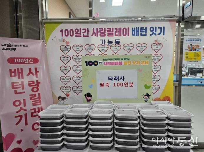 [아시아통신] 의정부시 가능동주민센터는 12월 19일 한국불교태고종 타래사가 동지를 맞아 팥죽 100그릇을 기탁하며 ‘100일간 사랑릴레이 배턴 잇기’에 동참했다고 밝혔다.