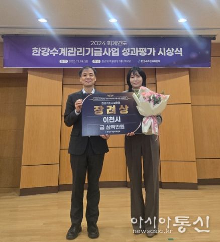 [아시아통신] 이천시는 한강수계관리위원회가 실시한 ‘2024 회계연도 한강수계관리기금 성과평가’에서 환경기초시설 운영 분야 장려상을 수상했다고 밝혔다. 이천시는 이번 평가에서 31개 관리청 가운데 3위에 올랐다.