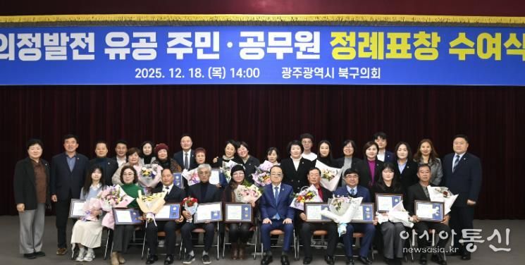 [아시아통신] 광주 북구의회는 지난 18일, 지역사회 발전에 헌신한 유공자들의 노고를 기리기 위해 ‘2025년도 4분기 정례표창 수여식’을 개최했다.