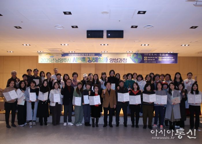 [아시아통신] 남양주시는 22일 금곡양정행정복지센터 6층 다목적공연장에서 기후위기 대응과 지역사회 환경교육의 핵심 역할을 수행할 ‘2025년 시민환경해설사 양성과정’ 수료식을 개최했다.