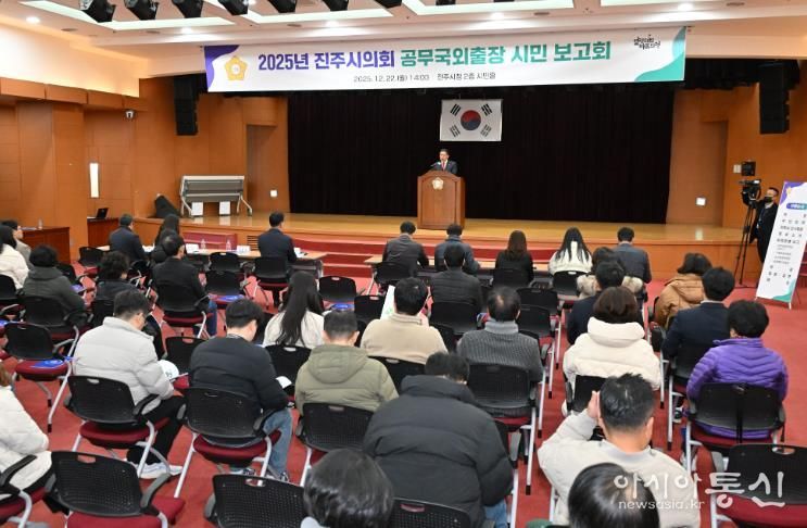 [아시아통신] 진주시의회는 22일 시민과 시 관계부서 공무원, 출연·유관기관 관계자 등이 참석한 가운데 ‘2025년 진주시의회 공무국외출장 시민보고회’를 시청 시민홀에서 열고, 해외 연수 성과의 정책 적용 가능성을 시민과 함께 살폈다.