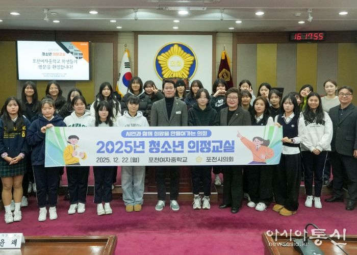 [아시아통신] 포천시의회는 22일 포천시의회 본회의장에서 포천여자중학교 학생 30여 명을 대상으로 ‘포천시의회 청소년 의정교실’을 개최했다.