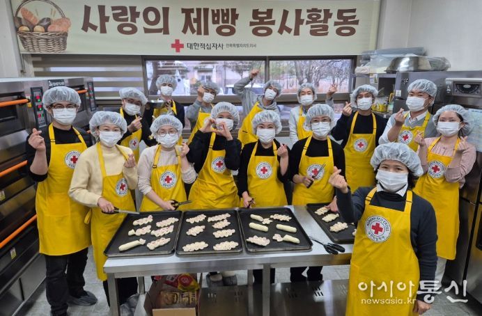 [아시아통신] 전북특별자치도교육청 교육협력과 직원 20여 명은 23일 대한적십자사 희망나눔 제빵 봉사활동에 참여해 직접 만든 빵을 전주 호성보육원과 지역아동센터에 전달했다.