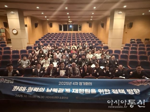 [아시아통신] 민주평화통일자문회의 울산동구협의회(회장 장예식)는 12월 23일 오후 3시 30분 HD아트센터 소공연장에서 자문위원 등 50여 명이 참석한 가운데 ‘화해·협력의 남북 관계 재정립을 위한 정책 방향’을 주제로 2025년 4차 정기 회의를 개최했다.