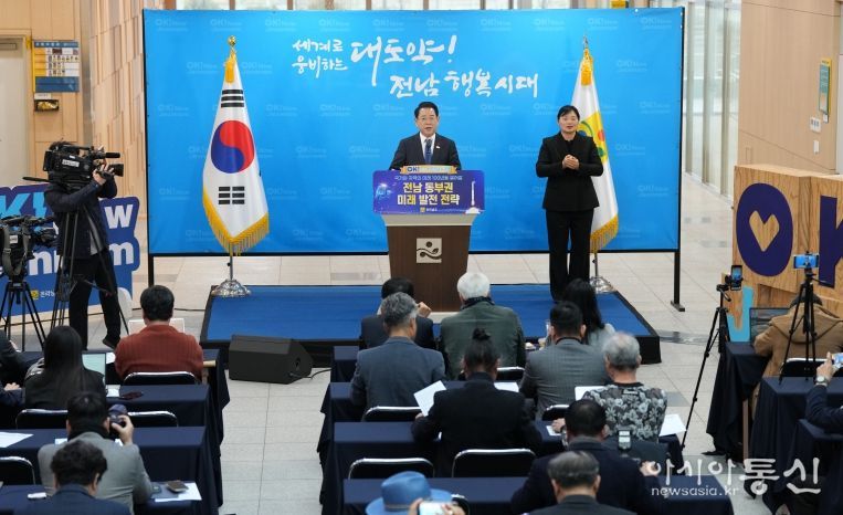 [아시아통신] 김영록 전라남지사는 24일 동부지역본부에서 열린 동부권 송년 기자 브리핑에서 2026년을 ‘동부권 100년 대도약의 원년’으로 선포하고 전남 미래 성장의 핵심 거점으로 육성하는 동부권 발전 전략을 발표했다.