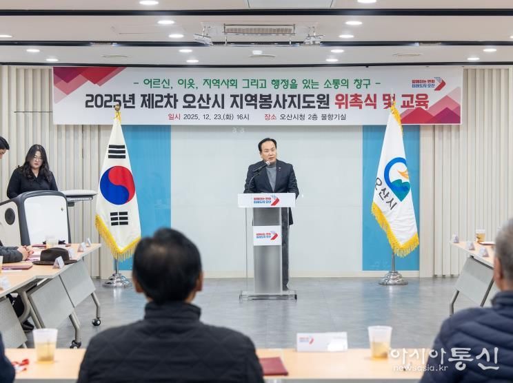 [아시아통신] 오산시는 지난 23일 오산시청 물향기실에서 신규 경로당 회장을 대상으로 한 '2025년 지역봉사지도원 위촉식'을 개최했다고 밝혔다.