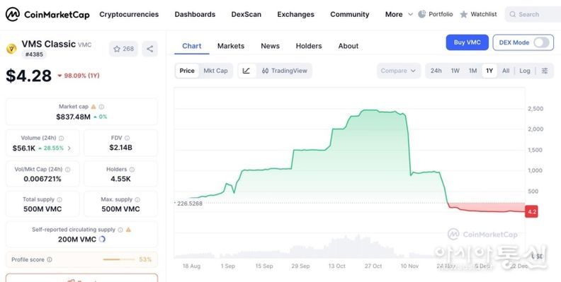 출금정지처분의 결정적 요인은 자체 발행한 VMC 코인이 불법매도된 사건이다. 2025년7월에 최초 미국 거래소인 Bitmart 에 상장한 VMC 는 상장가 $10을 시작으로 높은 상장 시작가임에도 불구하고 2개월만에 $600 대를 돌파했다. 사건이 터지기 11월4일 전까지는 $2,400 까지 넘어서는 놀라운 기록을 보였지만 결국 불법매도가 시작된 LBank 가 빅토리아 거래소를 금융당국에 신고하면서 현재는 상장가 미만으로 가격이 폭락하게 되는 희대의 사건으로 전락하고 말았다.