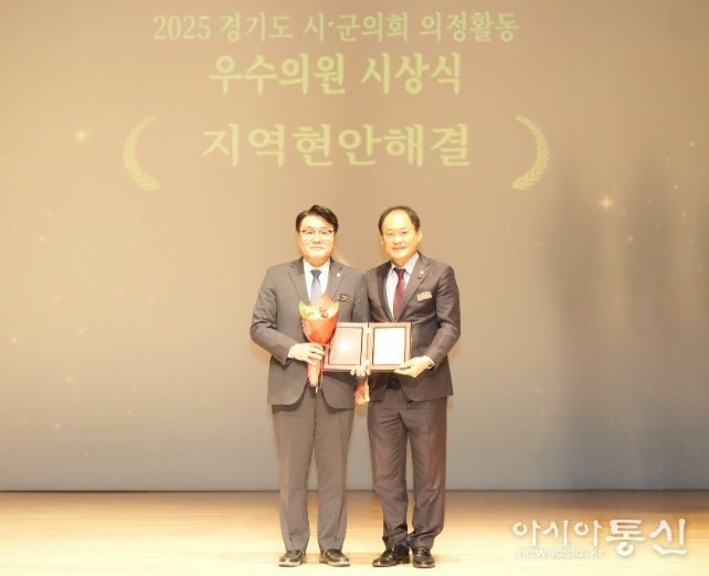 [아시아통신] 포천시의회 연제창 부의장이 24일 동두천시 시민회관에서 열린 2025년 경기도시·군의회 의정활동 우수의원 시상식에서 지역현안해결 분야 우수의원으로 선정되는 영예를 안았다.