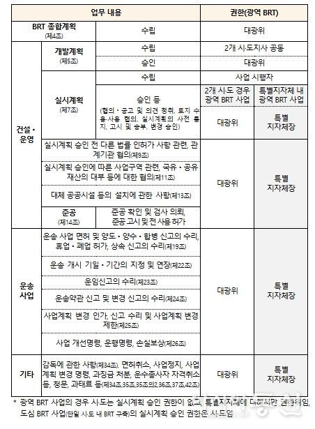 이번에 위임되는 광역 BRT 사무의 주요 내용은 다음과 같다.