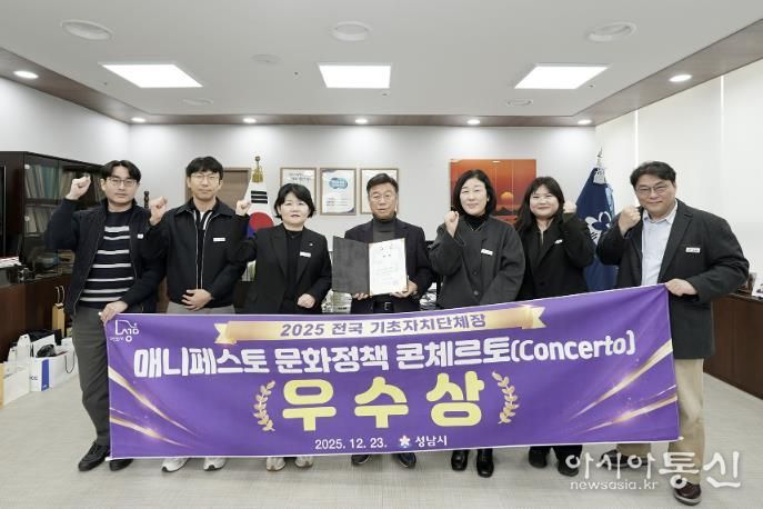 [아시아통신] 성남시는 ‘2025 전국 기초자치단체장 매니페스토 문화정책 콘체르토(Concerto)’ 대회에서 신인 예술인 등용문인 ‘성남(SN) 탤런트’ 사업 성과를 인정받아 문화 활동 활성화 분야 우수상을 받았다고 26일 밝혔다.
