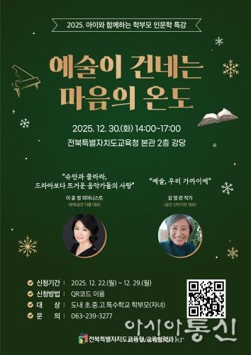 [아시아통신] 전북특별자치도교육청은 30일 오후 2시 2층 강당에서 ‘아이와 함께하는 학부모 인문학 특강’을 개최한다.