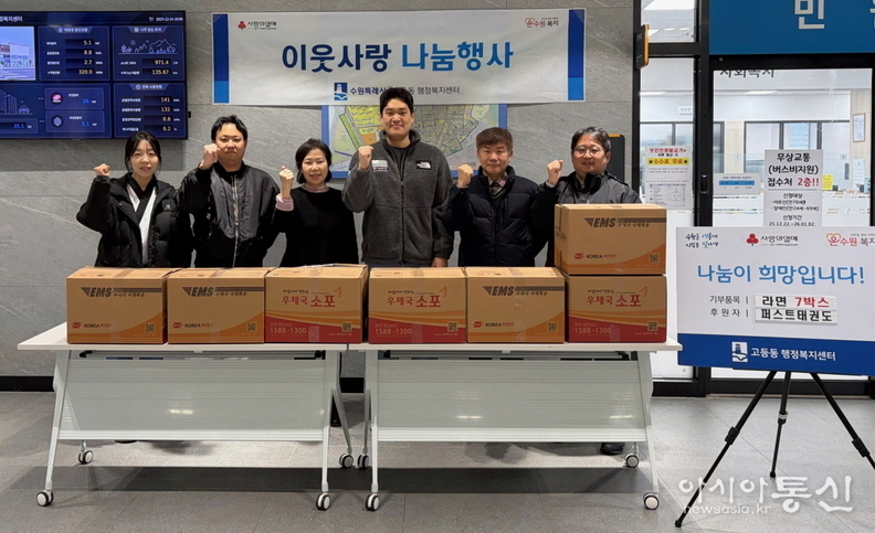 수원시 팔달구 고등동(동장 윤병철)은 12월 24일, 관내 퍼스트 태권도장에서 연말을 맞아 어려운 이웃을 위해 라면을 기부했다고 밝혔다.