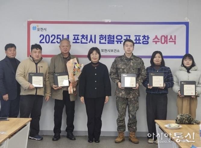 [아시아통신] 포천시는 26일 보건소 2층 회의실에서 헌혈 문화 확산과 사랑 나눔 실천에 기여한 개인 및 단체를 대상으로 헌혈 유공 표창 수여식을 개최했다.