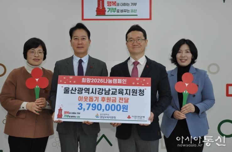 [아시아통신] 울산 강남교육지원청은 연말연시를 맞아 29일 울산사회복지공동모금회에 이웃사랑 나눔 성금 379만 원을 전달했다.