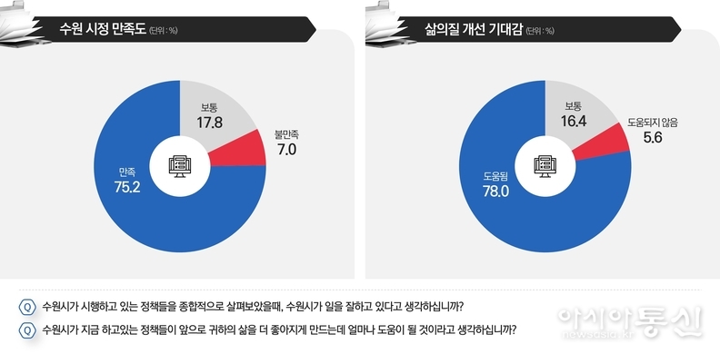 수원시민 4명 중 3명은 “수원시가 일을 잘하고 있다”고 생각하는 것으로 나타났다. 시민 일상과 밀접한 생활밀착형 정책이 시정 만족도를 높이고 있는 것으로 보인다.