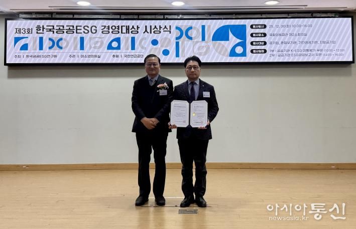 이번 시상식은 한국공공ESG연구원이 주최하고 이소영 국회의원실이 주관, 국민연금공단이 후원한 행사로, 2025년 한 해 동안 공공기관의 ESG 경영 이행 수준을 객관적으로 진단하고 우수 사례를 확산하기 위해 마련됐다.