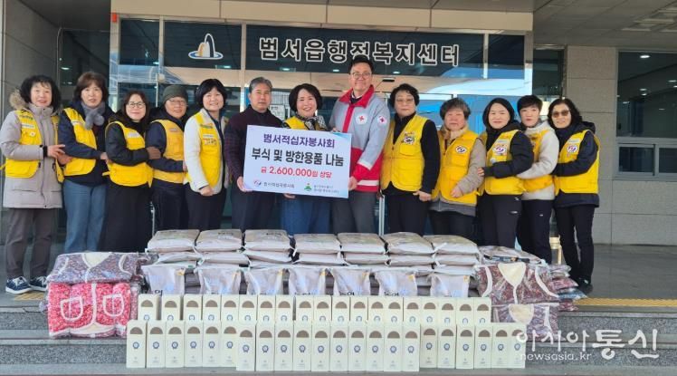 [아시아통신] 울주군 범서읍 적십자봉사회가 30일 범서읍 행정복지센터를 방문해 지역 취약계층 50세대를 위한 백미와 방한의류 등 260만원 상당의 후원품을 기탁했다.