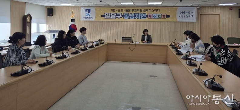 수원시 팔달구(구청장 이상균)는 30일(화) 돌봄통합지원 담당자 스터디 모임인 2차 동심지언(同心之言)을 개최했다. 동심지언(同心之言)은 2026년 3월 돌봄통합지원사업 전국 시행을 앞두고, 지난 10월부터 격월로 구·동 담당자의 소통과 역량 강화를 위해 시행하고 있는 스터디 모임이다.