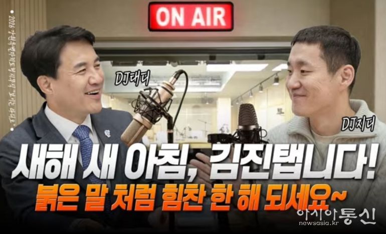 김 지사는 이날 도청 본관 소회의실에서 진행된 라디오에서 “취임 이후 매년 시무식을 이렇게 라디오로 진행하고 있다”며, “1년 만에 디제이 태디로 돌아왔다”고 인사했다.