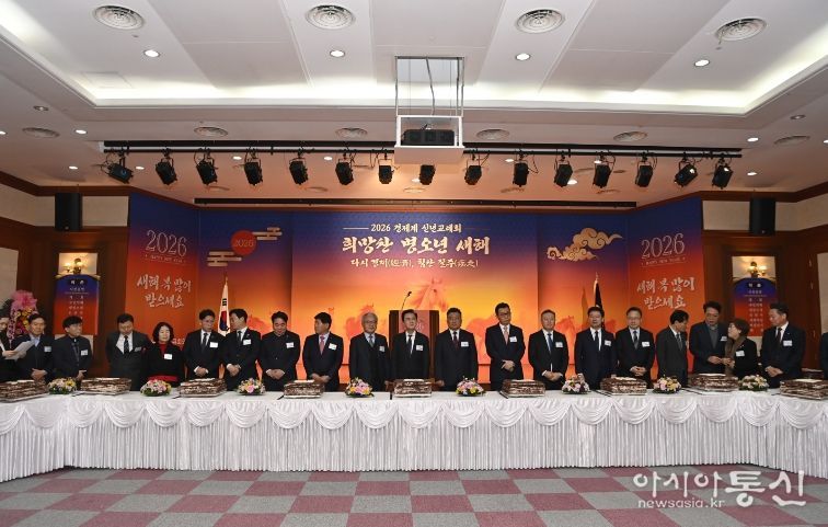 [아시아통신] 김태흠 충남도지사는 7일 천안에 있는 충남북부상공회의소 대회의실에서 열린 ‘2026년 충남 경제계 신년교례회’에 참석해 기업인들을 격려하고 새해 인사를 전했다.