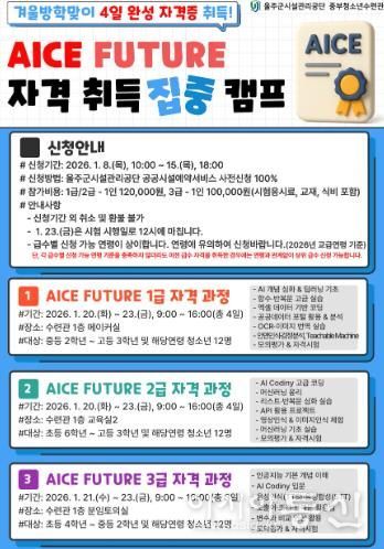 ![[중부청소년수련관] 겨울방학 맞아 AICE FUTURE 자격취득 집중 캠프 운영 홍보지](/data/photos/portnews/202601/20260108154127-55075.jpg)