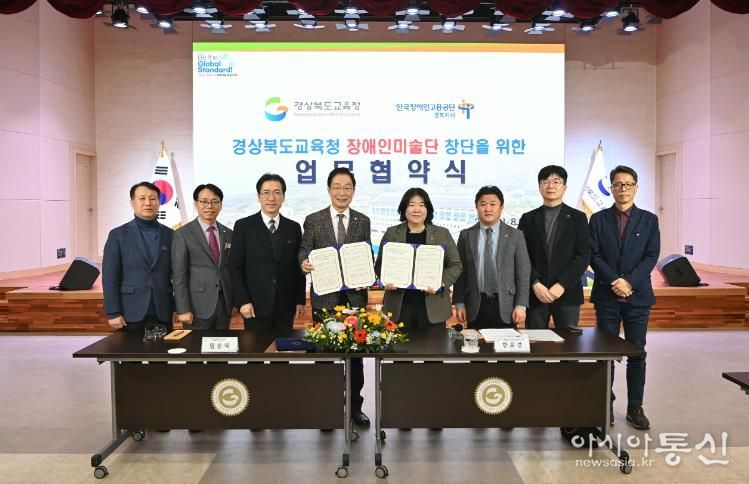 [아시아통신] 경북교육청은 8일 본청 웅비관에서 한국장애인고용공단 경북지사와 ‘(가칭)경상북도교육청 장애인미술단’ 창단을 위한 업무협약을 체결했다고 밝혔다.