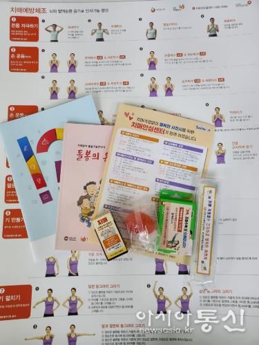 '마음 든든! 치매안심 꾸러미'는 ▲에코백 ▲인지 능력 향상 워크북 ▲악력볼 ▲건강관리 영양제 ▲칫솔세트 ▲위생밴드 ▲치매가족 돌봄기술 안내책자 ▲치매예방 운동 포스터 등 치매예방과 일상 건강관리에 도움이 되는 물품들로 구성돼 있다.