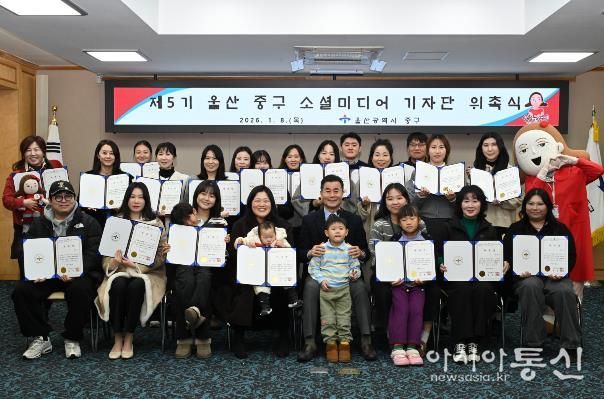 [아시아통신] 울산 중구가 제5기 중구 소셜미디어 기자단을 새롭게 구성하고 지난 1월 8일 오후 6시 30분 중구청 중회의실에서 위촉식을 열었다.