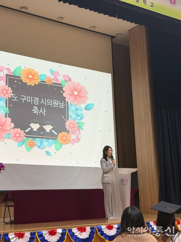 구미경 의원은 축사를 통해 “졸업은 끝이 아니라 또 다른 시작으로, 중학교라는 새로운 무대에서 각자의 꿈과 가능성을 마음껏 펼쳐가길 바란다”며, “아이들이 안전하고 건강한 환경 속에서 꿈과 개성을 키워갈 수 있도록 교육 현장의 목소리를 꾸준히 경청하며 의정활동에 최선을 다하겠다”고 밝혔다.