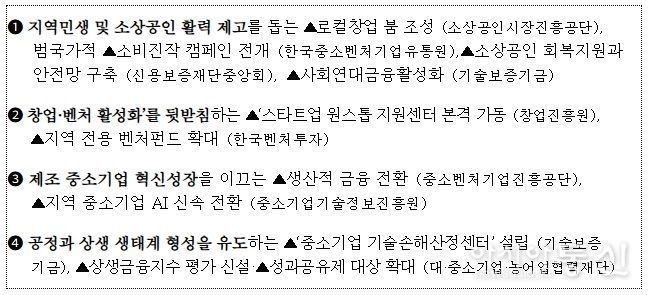 이 자리에서 중소벤처기업진흥공단, 소상공인시장진흥공단, 기술보증기금등 15개 기관으로부터 업무 보고를 받는 가운데, 중소기업중앙회, 벤처기업협회, 소상공인연합회, 코리아스타트업포럼 등 5개 민간 기업단체가 참여하여, 열띤 토론이 펼쳐졌다.