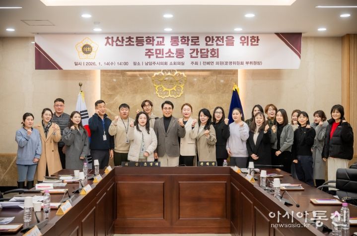 [아시아통신] 남양주시의회는 14일 시의회 소회의실에서 차산초등학교 통학로 안전을 위한 주민소통 간담회를 개최했다.