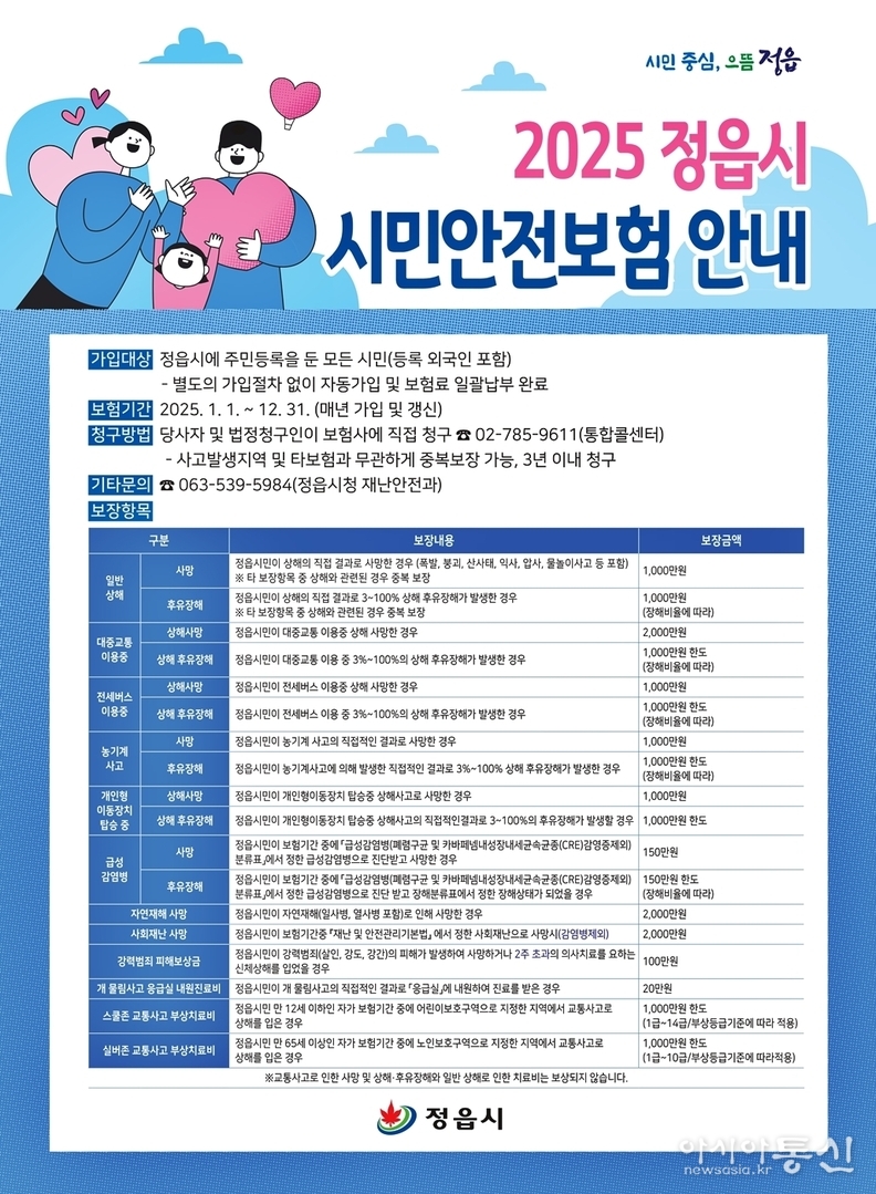 전라북도 정읍시가 시민 안전 강화를 위해 시민안전보험 보장 항목을 확대 운영하기로 했습니다.