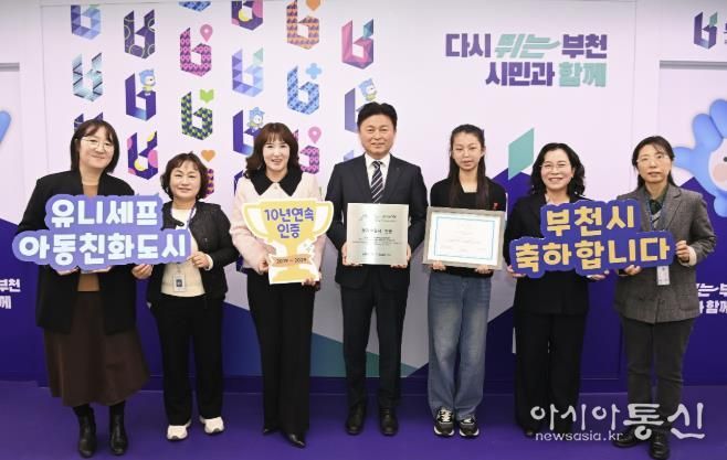 [아시아통신] 부천시는 유니세프 한국위원회로부터 ‘유니세프 아동친화도시’ 인증을 갱신했다고 14일 밝혔다. 이번 인증은 2019년 12월 최초 인증에 이어 자격을 유지한 것으로, 유효기간은 2029년 12월 30일까지다.