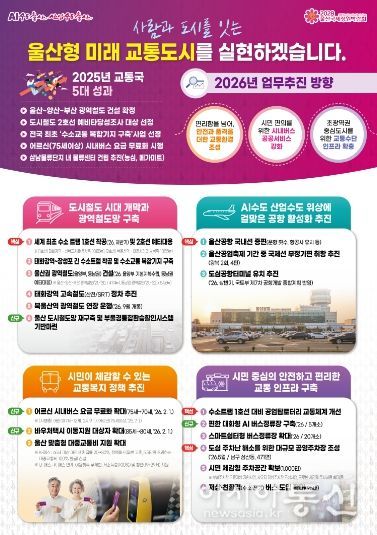 [아시아통신] 울산시는 사람과 도시를 잇는 울산형 미래교통 도시 실현을 위해 2026년 교통 분야 정책 방향을 수립하고 추진에 나선다고 밝혔다.