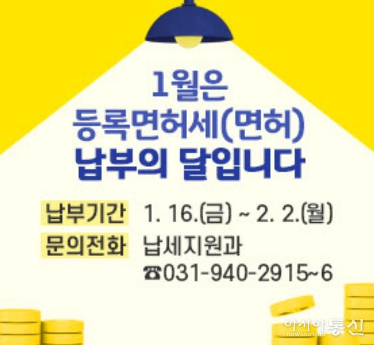 파주시 관계자는 “등록면허세(면허)는 비교적 소액이어서 납부를 놓치는 경우가 많다”라며, “납부기한이 경과하면 부과 금액의 3%에 해당하는 납부지연 가산세가 추가되므로 반드시 기한 내 납부해 주시길 바란다”라고 당부했다.