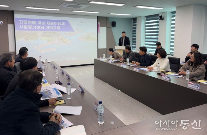 [아시아통신] 경상남도는 16일 오전 10시 김해시 한림면 명동일반산업단지 내 미래자동차버추얼센터에서 ‘고중량물 AMR(자율이동로봇) 시험평가센터’ 추진상황 점검보고회를 개최했다.