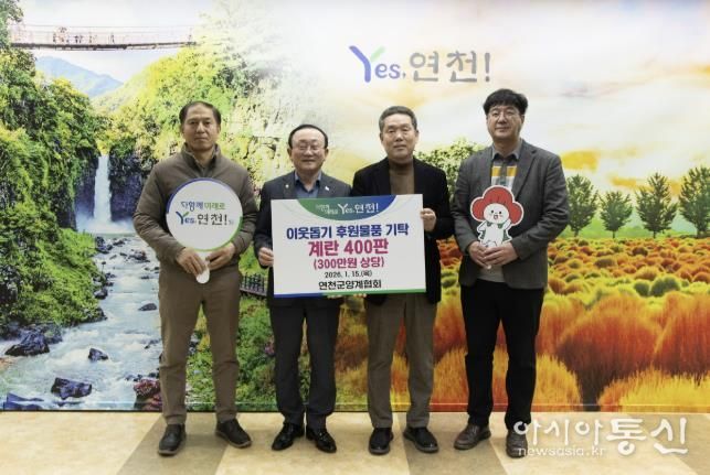 [아시아통신] 연천군양계협회는 지난 15일 연천군청을 방문해 지역 내 취약가정을 지원하기 위해 계란 400판(300만원 상당)을 연천군가족센터에 후원물품으로 지정 기탁했다.
