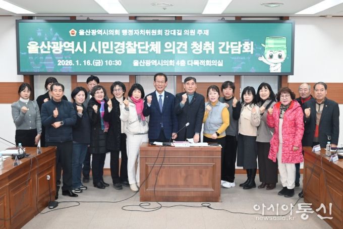 [아시아통신] 울산시의회 강대길 의원은 16일 의회 4층 다목적회의실에서 주민, 시민경찰단체, 경찰위원회ㆍ경찰청 관계 부서 등과 함께 ‘울산광역시 시민경찰단체 의견 청취’ 간담회를 개최했다.