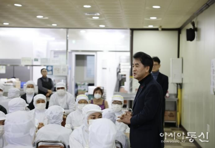 [아시아통신] 최재형 보은군수는 19일 ㈜이킴 삼승공장을 방문해 지난해 화재로 피해입은 보은공장 상황과 생산 정상화와 대체 생산 체계 운영 상황을 점검하고 임직원들을 격려했다.