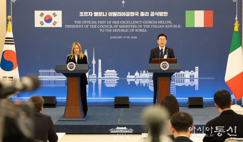 [아시아통신] 이재명 대통령은 19일 조르자 멜로니 이탈리아 총리와의 정상회담 뒤 "저와 멜로니 총리는 전략적 동반자 명칭에 부합하는 미래지향적 수준으로 양국 관계를 더욱 발전시켜 나가기로 합의했다"고 밝혔다.