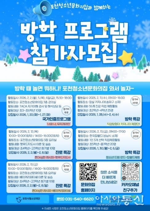 [아시아통신] 포천시청소년재단이 운영하는 포천청소년문화의집은 청소년들의 진로 탐색과 창의 역량 강화를 위한 겨울방학 프로그램 참가자를 모집한다.