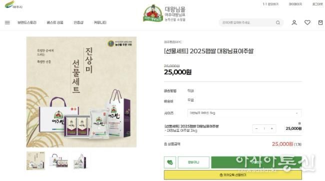 [아시아통신] 여주시 농산업 공동브랜드 활성화센터는 여주대왕님표 인증을 받은 정미소에서 생산한 여주쌀을 판매하는 여주대왕님몰에 ‘카카오톡 선물하기’ 기능을 새롭게 도입하며 소비자 편의성을 한층 강화했다고 밝혔다.