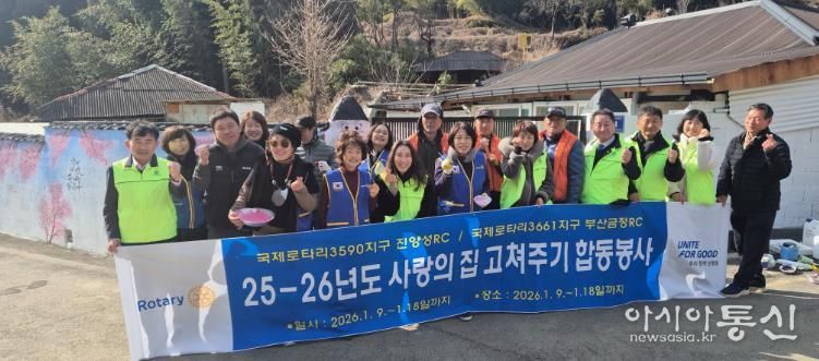 [아시아통신] 국제로타리 3590지구 진양성로타리클럽은 지난 1월 12일부터 20일까지 9일간 이반성면 관내 취약계층 독거노인을 대상으로 주거환경 개선을 위한 ‘사랑의 집고쳐주기’ 봉사활동을 실시했다.