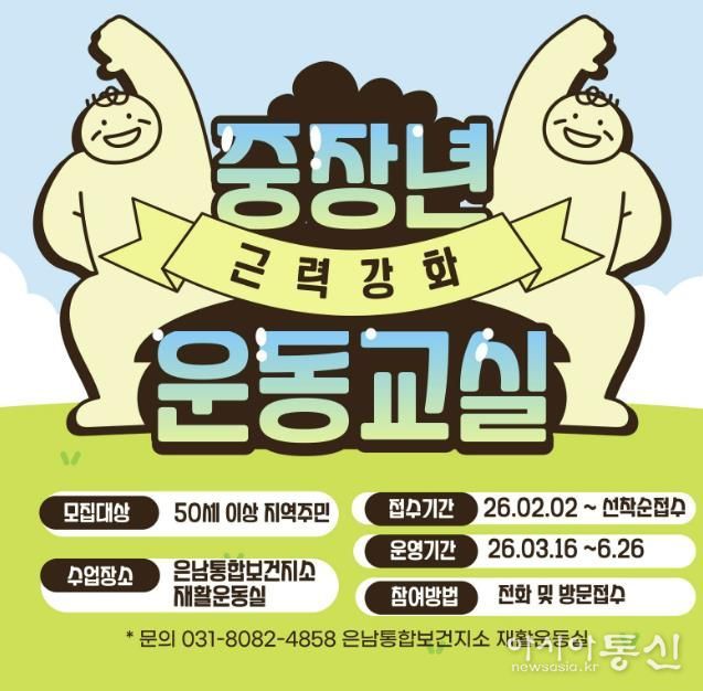 [아시아통신] 양주시 보건소는 지역 주민의 건강 증진과 활기찬 노후 준비를 지원하기 위해 은남통합보건지소 재활운동실에서 ‘2026년 중장년 근력 강화 운동’ 프로그램을 운영한다.