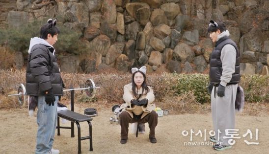 최근 진행된 녹화에는 구미호가 되고자 여우골에 모여 수련 중이던 멤버들 앞에 남다른 비주얼을 자랑하는 MZ 여우들이자, SBS 금토드라마 ‘오늘부터 인간입니다만’의 두 주인공, 배우 김혜윤과 로몬이 신입 여우로 등장했다. 배우 김혜윤은 등장과 동시에 지예은과는 확연히 비교되는 안정적인 스쾃을 선보이며 김종국의 환심을 샀다. 반면 뾰로통해진 지예은을 지켜보던 로몬은 곁에 다가가 “누나 되게 귀여우시네요”라며 직진 플러팅을 해 두 사람은 이미 구미호 완성형의 비주얼로 모두를 홀렸다.