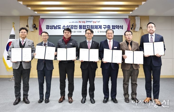 [아시아통신] 경상남도는 23일 도청 도정회의실에서 도내 소상공인 지원 6개 유관기관‧단체와 함께 소상공인 통합지원체계 구축을 위한 업무협약(MOU)을 체결하고, 소상공인에 대한 원스톱 지원체계를 본격 추진한다고 밝혔다.