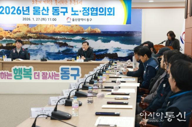 [아시아통신] 울산 동구는 1월 27일 오전 11시 동구청 상황실에서 지역 노동계와 함께하는 ‘2026년 노정협의회’를 개최했다. 이번 회의는 새해 구정 운영 방향을 공유하고 노동 분야 주요 정책을 설명하며, 노정 간 소통과 협력을 강화하기 위해 마련됐다.