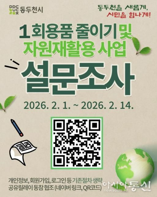 [아시아통신] 동두천시는 깨끗한 도시환경 조성을 위해 추진 중인 '1회용품 줄이기 및 자원 재활용 사업'의 기초자료로 활용하고자 시민 설문을 실시한다.