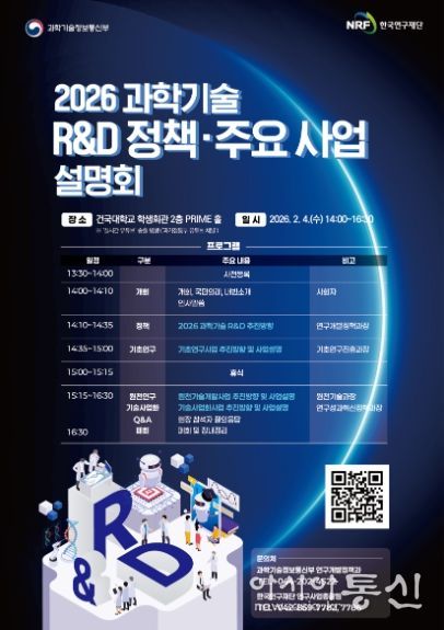 [아시아통신] 과학기술정보통신부는 2월 4일 오후 2시 건국대학교 학생회관 2층 PRIME홀에서 ‘2026 과학 기술 연구개발(R&D) 정책·주요 사업 설명회’를 개최했다고 밝혔다.
